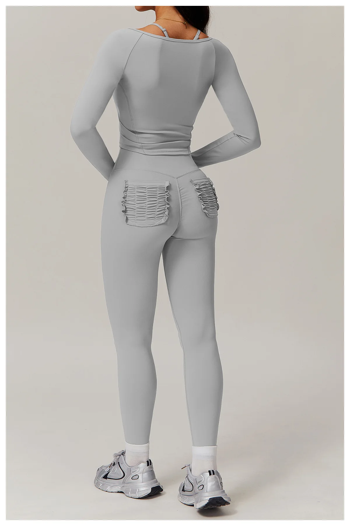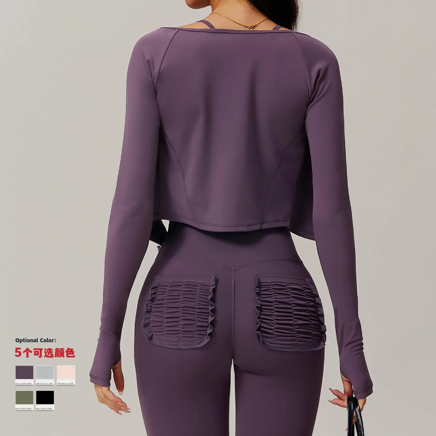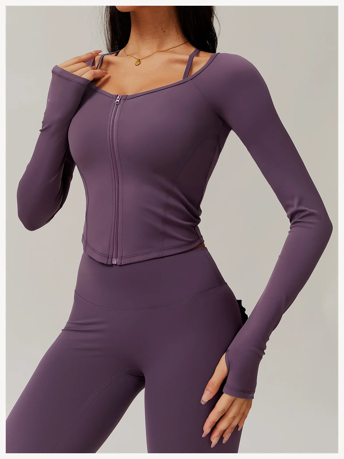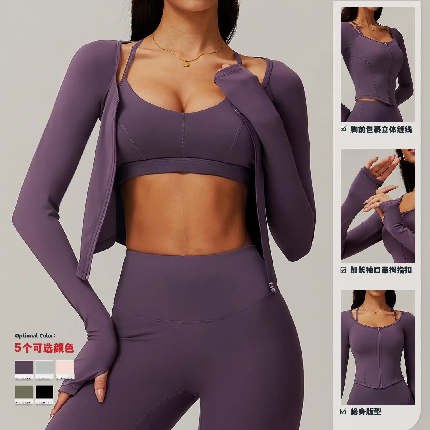 Quick-Dry Zippered Compression Running Long Sleeve Sports Jacket for Women, Fitness Nude-Feel Yoga Top Set